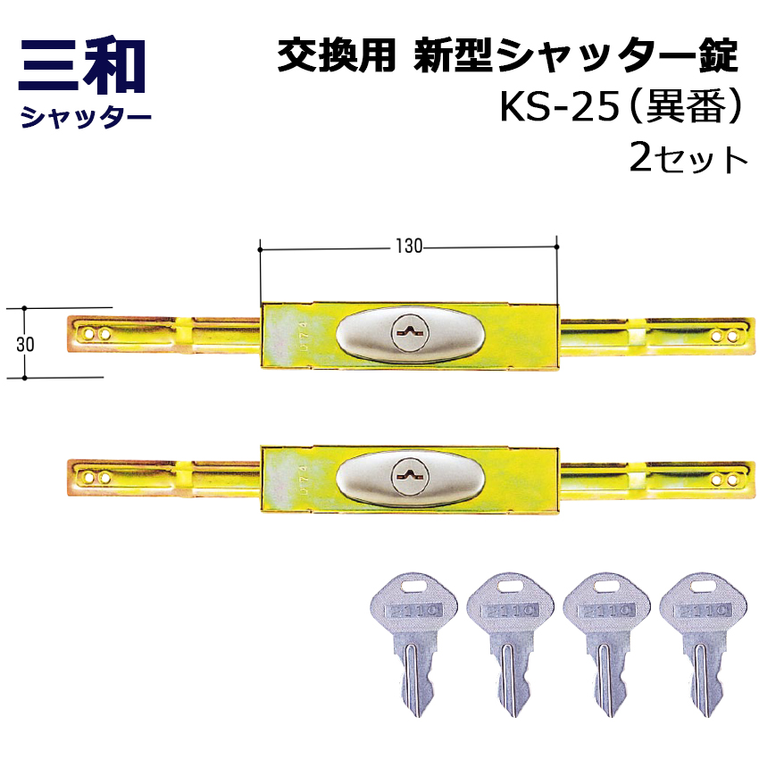 2022.06.16【商品紹介】三和シャッター SANWA 新型 シャッター錠 KS-25 同番(鍵番号:2572) 2セット目次 古くなった三和シャッターの鍵を自分で交換!取り付け可能条件交換方法キーの種類について古くなった三和シャッターの鍵を自分で交換! 三和シャッター用の交換錠前です。古くなって鍵が回りにくい、サビてきた、鍵を失くしてしま […]
