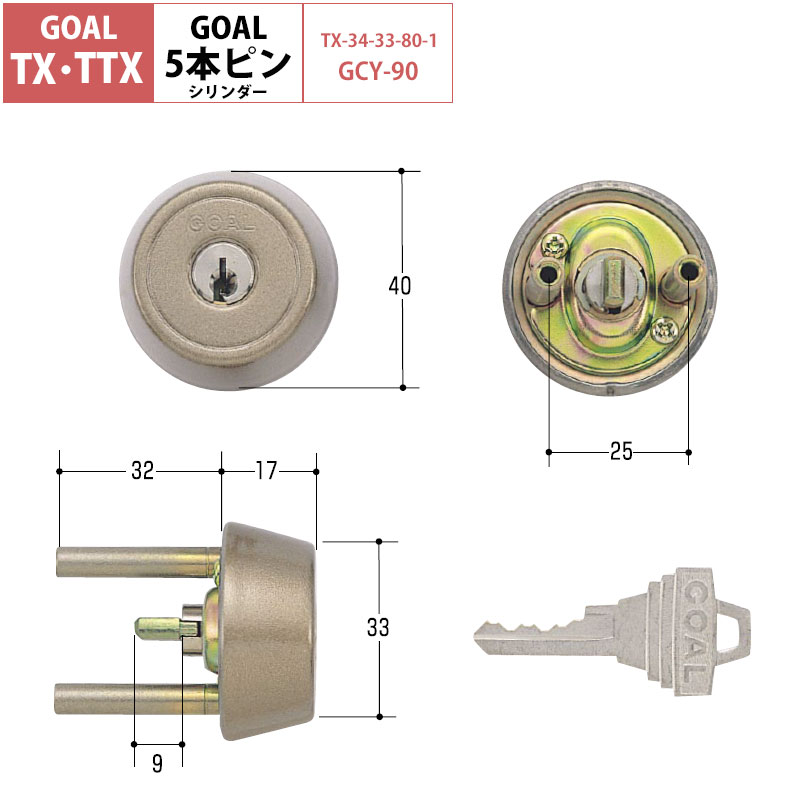 【商品紹介】GOAL(ゴール) TX交換用ピンシリンダー TX34-33 (GCY-90)